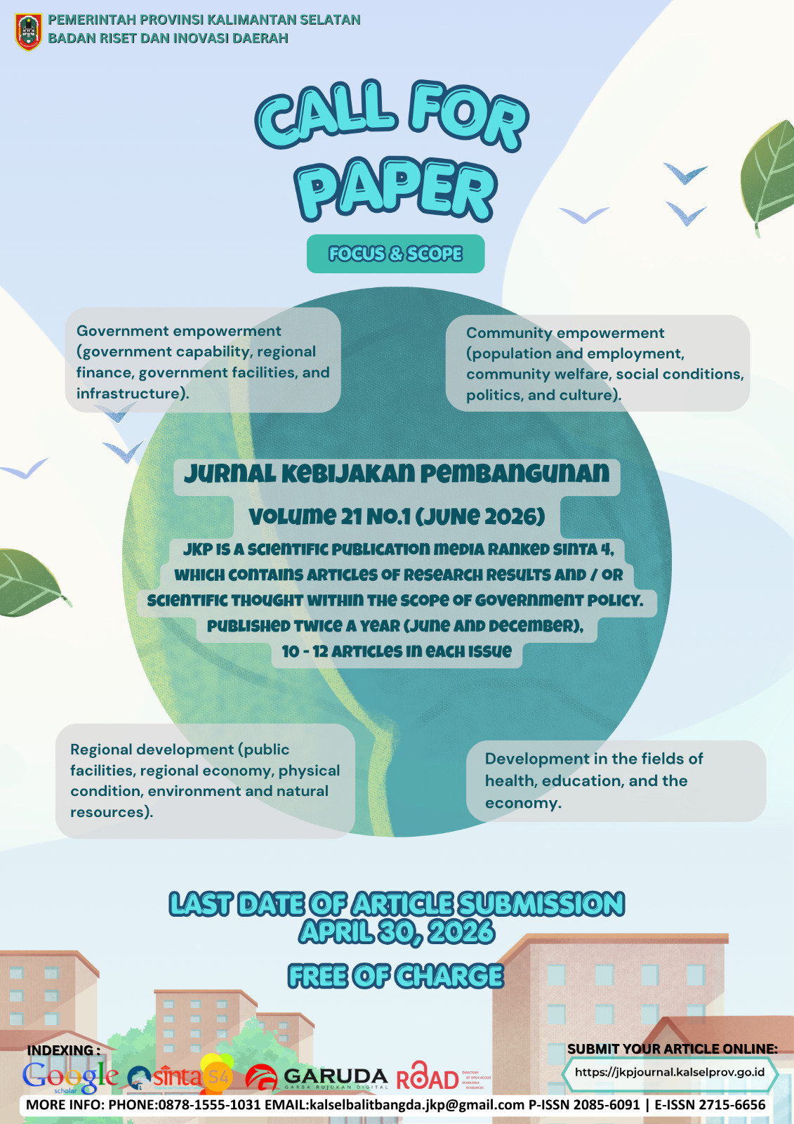 JURNAL KEBIJAKAN PEMBANGUNAN is nationally accredited by the Ministry of Research and Higher Education